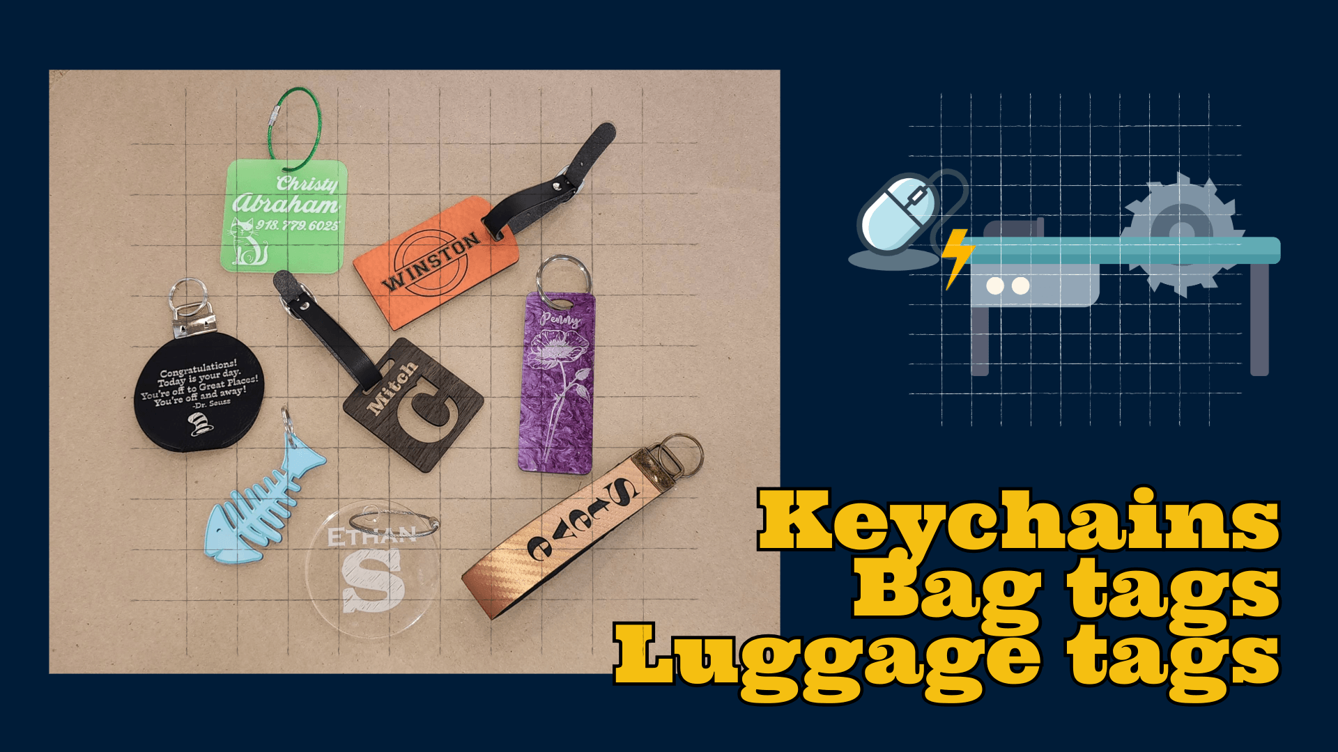 Design and make custom key chains, bag tags, and luggage tags in this hands‑on class. Attendees will learn basic 2D drawing on a Windows computer, then use our laser cutter/engraver to create personalized charms and tags. Finish your project by assembling pieces with jewelry loops, key chain hardware, pliers, and your creativity!